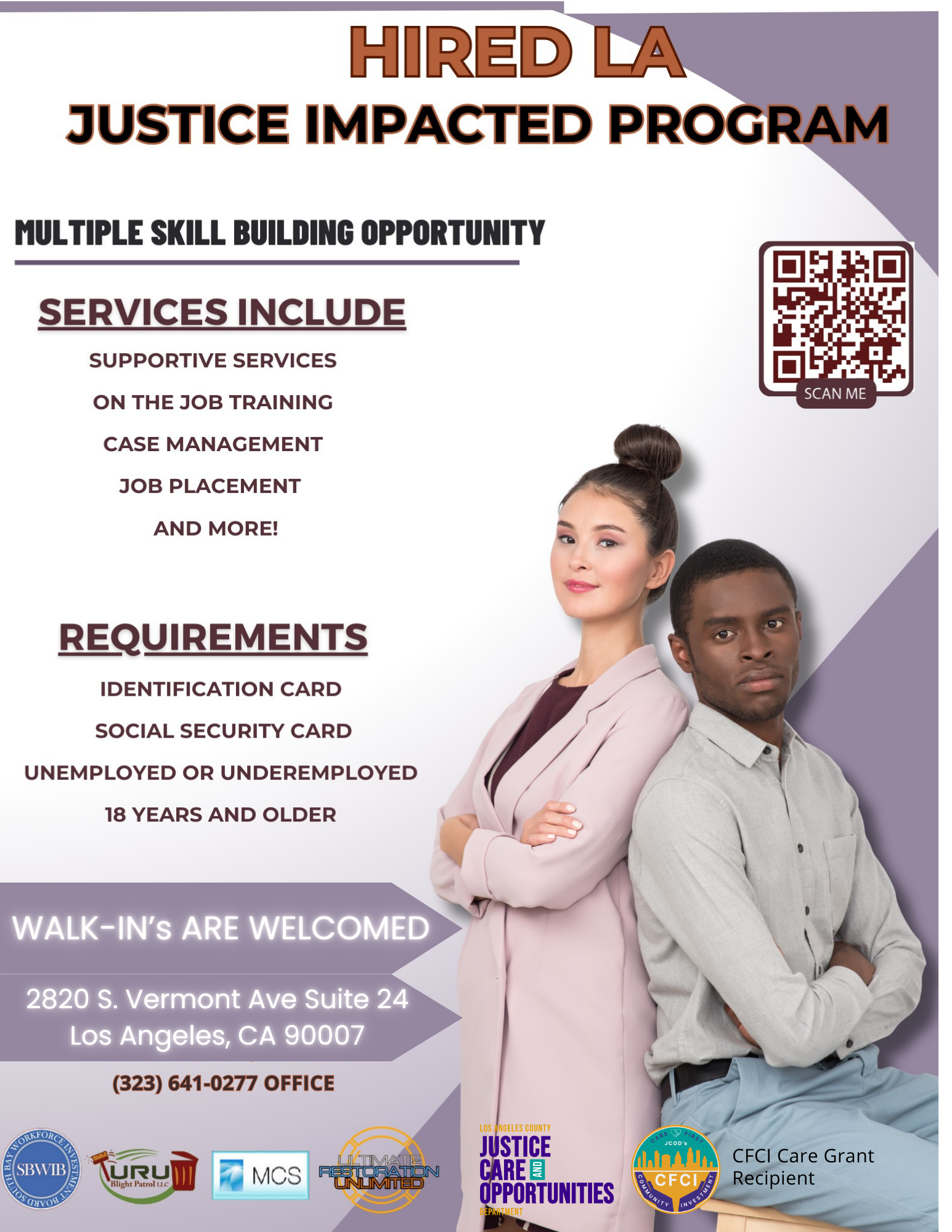 If you're justice-impacted and looking for a meaningful, tailored pathway to build your skills and yourself, join U.R.U.'s Hired LA: Justice- Impacted Program!